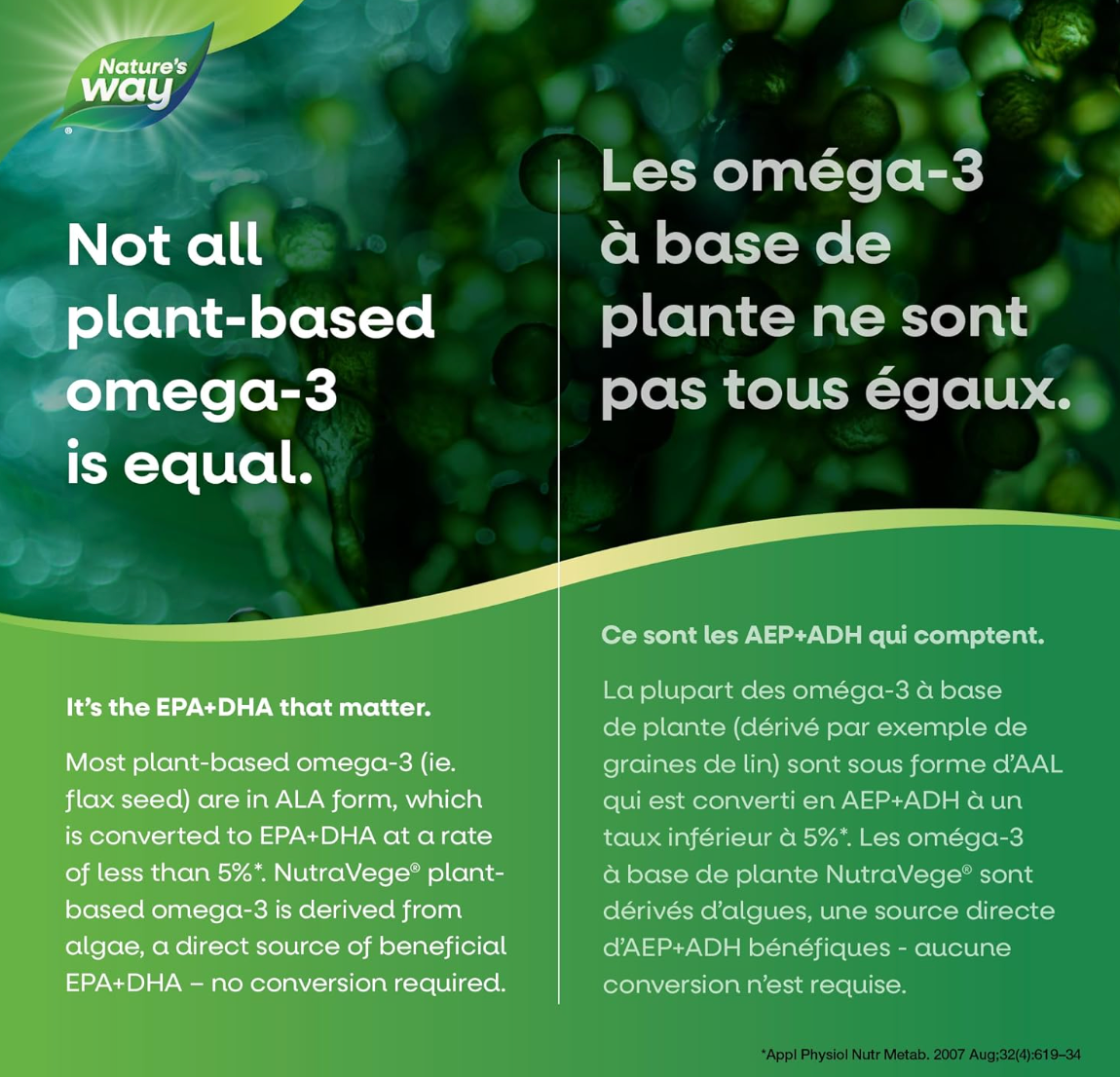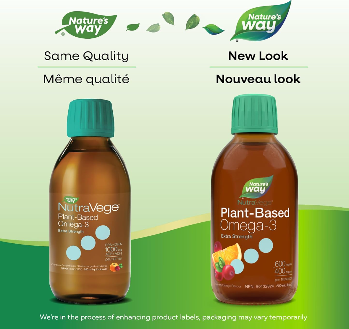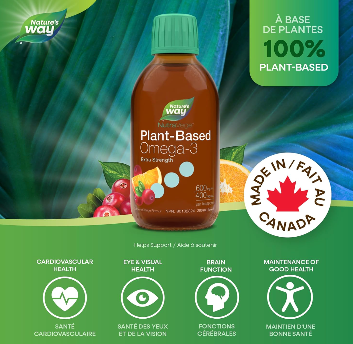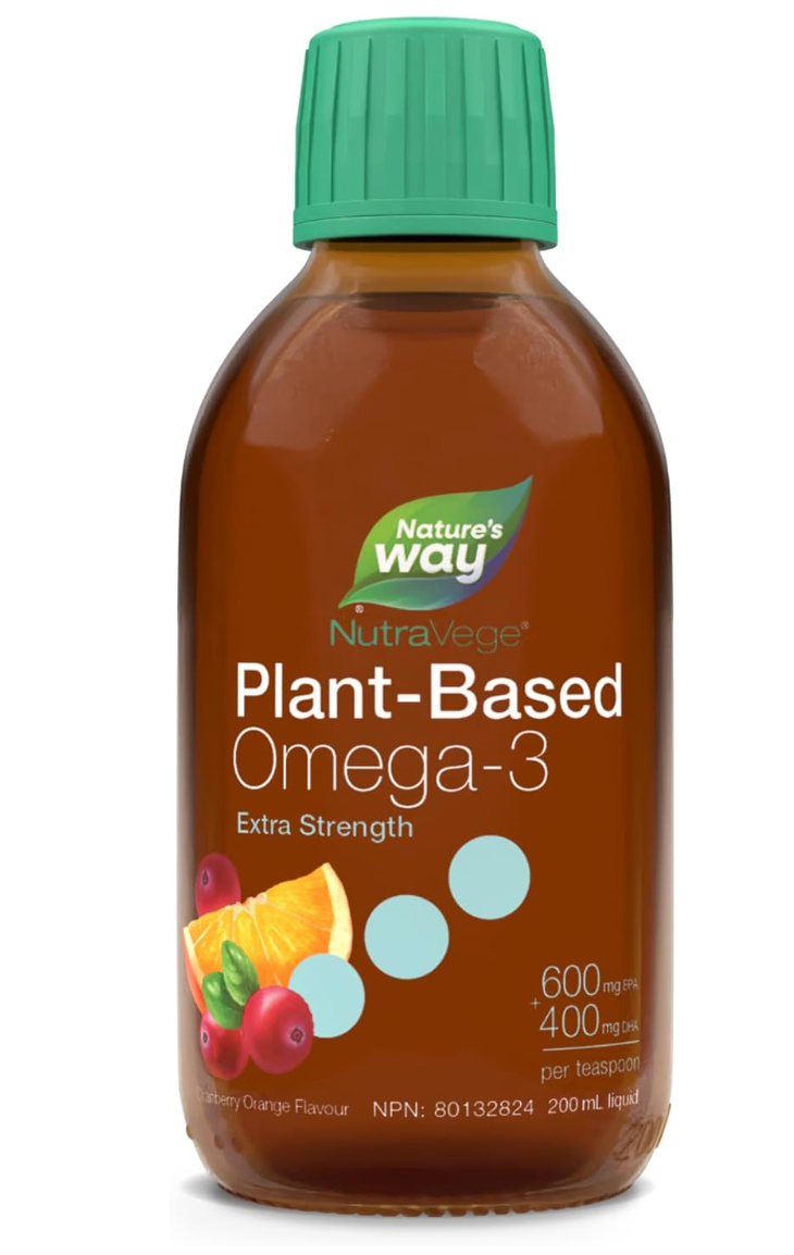 NutraVege+D Extra Strength is a plant-based omega-3 formula that's so good, you take it with a spoon. With 1000 mg of EPA+DHA from algal oil. NutraVege is 100% vegetarian and vegan-friendly. NutraVege helps to support the maintenance of good health and supports eye, brain, and cardiovascular health. Just one teaspoon a day in a delicious cranberry orange flavour.